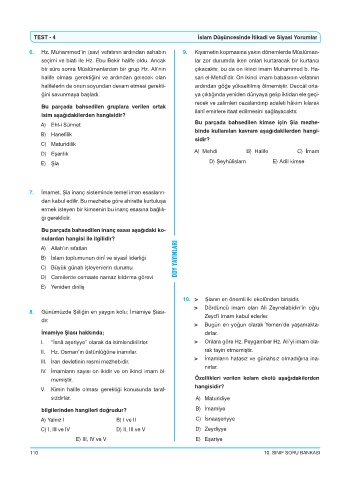 TEST - 4 İslam Düşüncesinde İtikadi ve Siyasi Yorumlar
