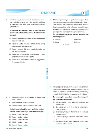 1. İslam’ın inanç, ibadet ve ahlak olmak üzere üç te- 3. Sözlükte “gidecek yer ve yol” anlamına gelir. Dinin