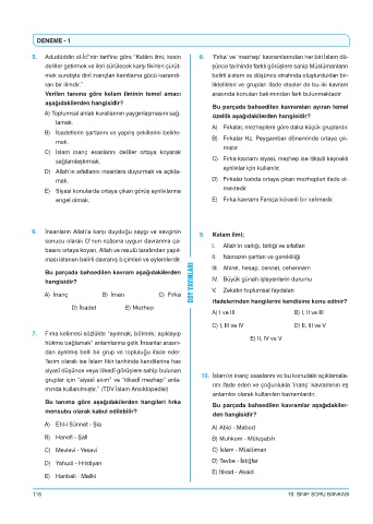 mak. D) Fırkalar batıda ortaya çıkan mezhepleri ifade et-