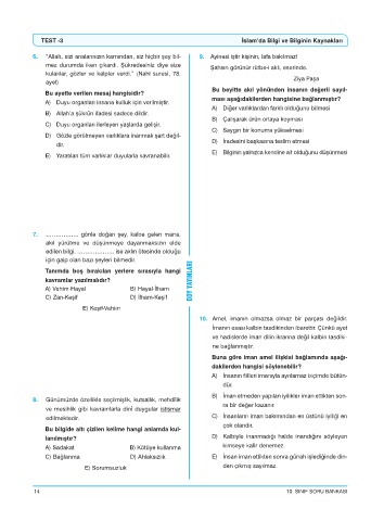 TEST -3 İslam’da Bilgi ve Bilginin Kaynakları