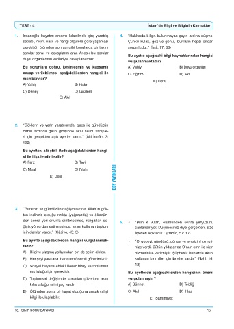 TEST - 4 İslam’da Bilgi ve Bilginin Kaynakları