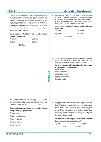 TEST - 5 İslam’da Bilgi ve Bilginin Kaynakları