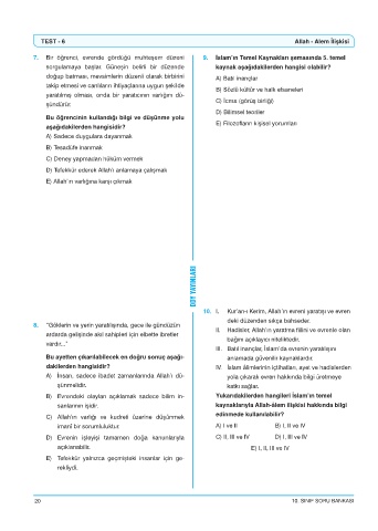 7. Bir öğrenci, evrende gördüğü muhteşem düzeni 9. İslam’ın Temel Kaynakları şemasında 5. temel