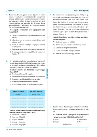 1. Beslenme, barıma, giyim, sosyal ilişkiler ne kadar 4. Hz. Muhammed (s.a.v.) şöyle buyurdu: “Yatağına gi-