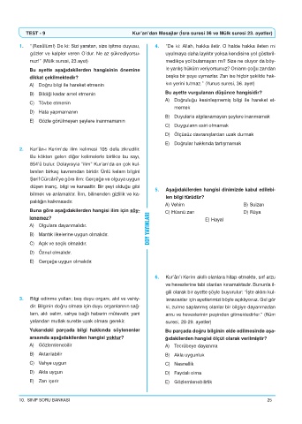 TEST - 9 Kur’an’dan Mesajlar (İsra suresi 36 ve Mülk suresi 23. ayetler)