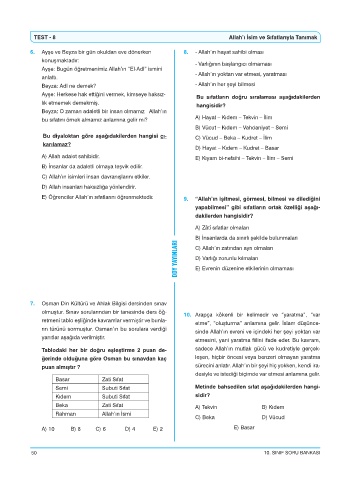 E) Öğrenciler Allah’ın sıfatlarını öğrenmektedir. 9. “Allah’ın işitmesi, görmesi, bilmesi ve dilediğini