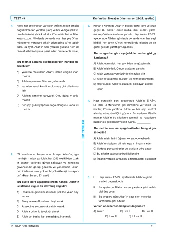 TEST - 9 Kur’an’dan Mesajlar (Haşr suresi 22-24. ayetler)
