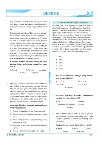 2. Allah (cC), isimleri ve sıfatlarıyla evrenin yaratıcısı ve A) I, II, III, IV B)I,III, IV, V