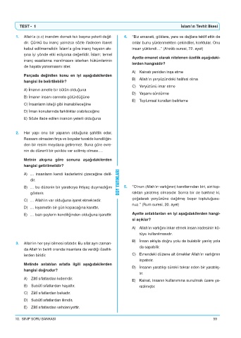 B) … bu düzenin bir yaratıcıya ihtiyaç duymadığını 5. “O’nun (Allah’ın varlığının) kanıtlarından biri, sizi top-