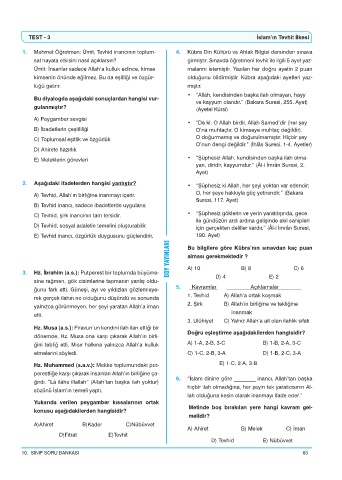 1. Mehmet Öğretmen: Ümit, Tevhid inancının toplum- 4. Kübra Din Kültürü ve Ahlak Bilgisi dersinden sınava