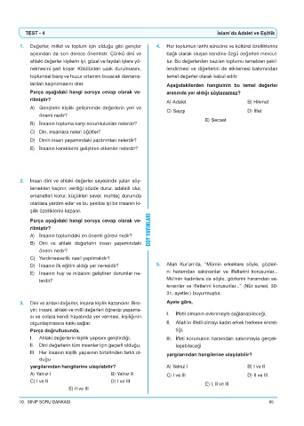 TEST - 4 İslam’da Adalet ve Eşitlik