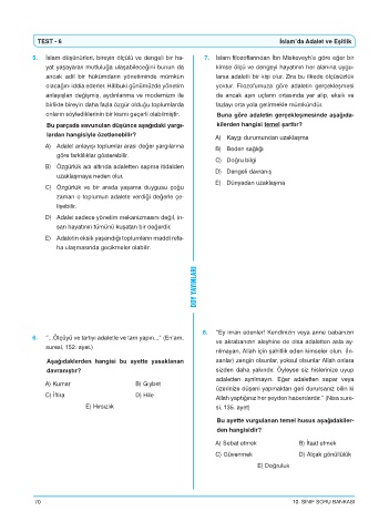 TEST - 6 İslam’da Adalet ve Eşitlik