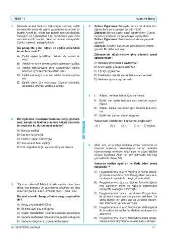 1. İslam’da adalet, herkese hak ettiğini vermek; eşitlik 4. Gülnur Öğretmen: Zübeyde, sence bir okulda tüm