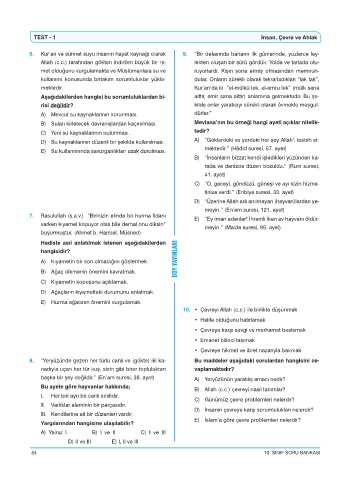 TEST - 1 Insan, Çevre ve Ahlak