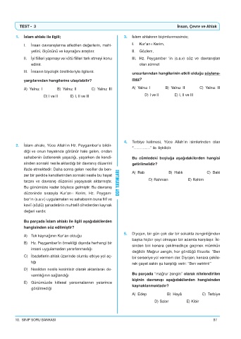 tarzını ve davranış düzenini yaşayarak aktarmıştır. DDY YAYINLARI D) Rahman E) Rahim