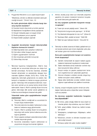 7. Teknoloji hayatımızı kolaylaştırırken, Allah’ın bize B) Dijital ortamlarda izinsiz kullanılan verilerin tep-