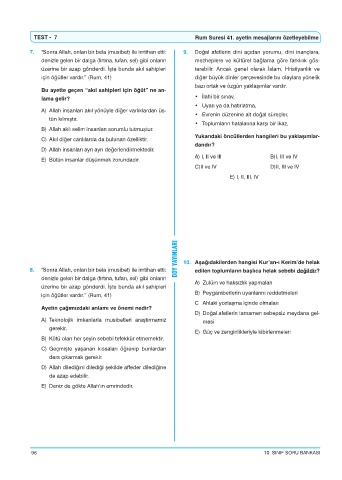 TEST - 7 Rum Suresi 41. ayetin mesajlarını özetleyebilme
