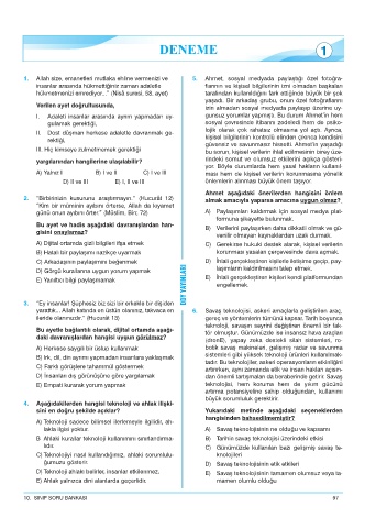 Bu ayet ve hadis aşağıdaki davranışlardan han- B) Verilerini paylaşırken daha dikkatli olmak ve gü-
