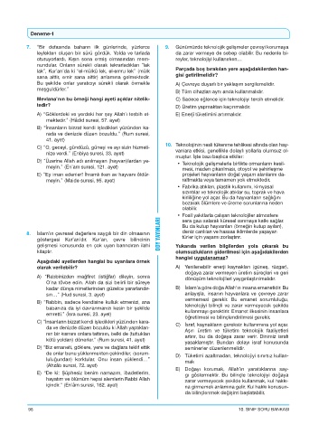 (Ahzâb suresi, 72. ayet) E) Doğayı korumak, Allah’ın yarattıklarına say-