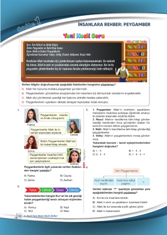 Peygamberlerle ilgili yukarıda verilen ifadeler- 4.