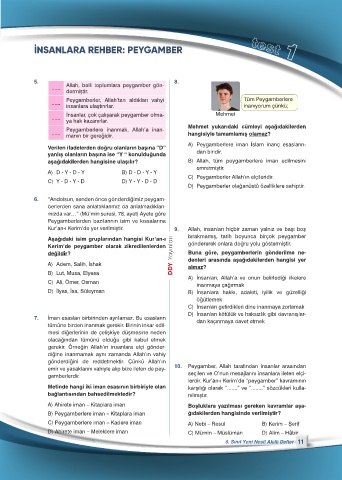 emir ve yasaklarını vahiyle alıp bize ileten de pey- 10. Peygamber, Allah tarafından insanlar arasından