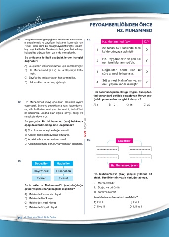 B) Hz. Muhammed (s.a.v) bu antlaşmaya katıl- 3 Doğduktan sonra kısa bir D