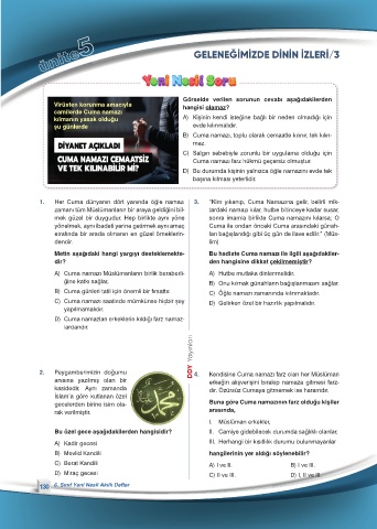 A) Cuma namazı Müslümanların birlik beraberli- A) Hutbe mutlaka dinlenmelidir.