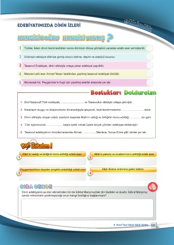 3. Dinin etkisiyle oluşan edebi eserlerin başında Allah’ın varlığı ve birliğinin konu edildiği ………….ler gelir.