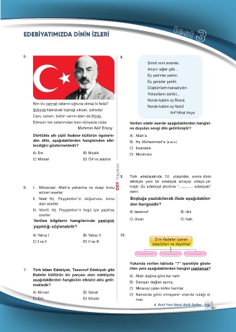 EDEBİYATIMIZDA DİNİN İZLERİ test 3