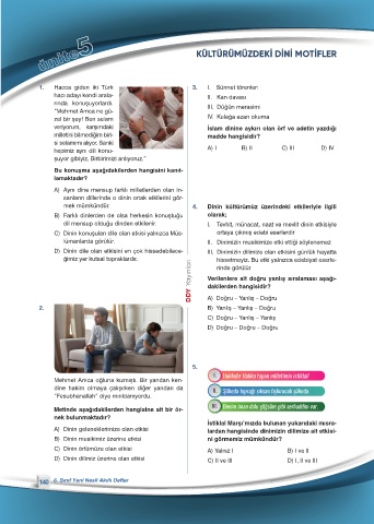 mek mümkündür. 4. Dinin kültürümüz üzerindeki etkileriyle ilgili