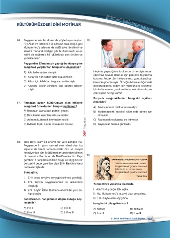 KÜLTÜRÜMÜZDEKİ DİNİ MOTİFLER genel tekrar testi