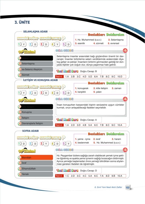 3. ÜNİTE cevap anahtarı