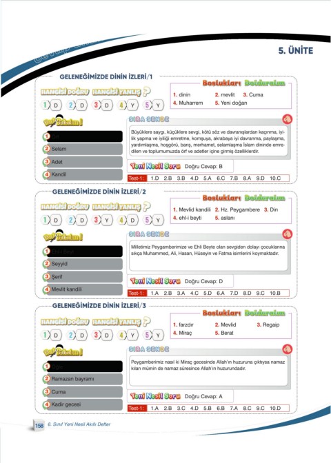 1 D 2 D 3 D 4 Y 5 Y 4. Miraç 5. Berat