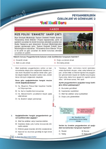 Haberin konusu Peygamberlerde bulunan ortak özelliklerden hangisiyle ilişkilidir?