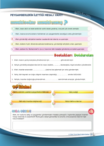 5. Vahiyle, insanları doğruluğa yönlendirmek, …………..…….. sakındırmak amacıyla gönderilmiştir.