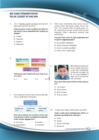 7. Kerim Öğretmen derste Felak suresiyle ilgili bilgi- D) IV’ten sonrasını