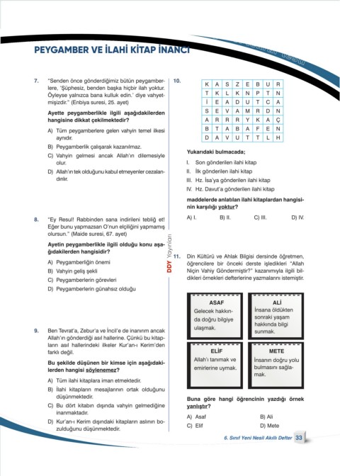 PEYGAMBER VE İLAHİ KİTAP İNANCI genel tekrar testi