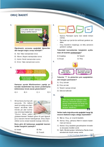 ği bu kavramı hemen hatırlayamadı. Biraz düşün- A) Merve: Oruç, en önemli ibadettir.