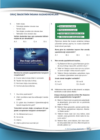 A) 2 B) 3 C) 4 D) 5 Öğretmen derste iftar duasını anlatırken tahtaya