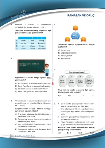 B) Ramazan ayı ve oruç, insana sahip olduğu ni- vermekle yükümlüdürler