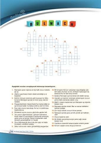 Aşağıdaki soruları cevaplayarak bulmacayı tamamlayınız.