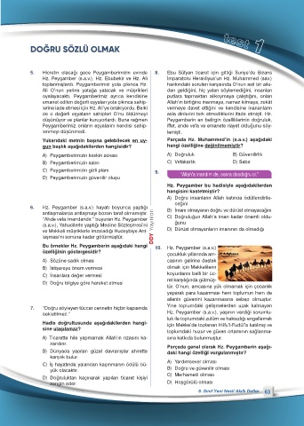 Yukarıdaki metnin başına gelebilecek en uy- Parçada Hz. Muhammed’in (s.a.v.) aşağıdaki