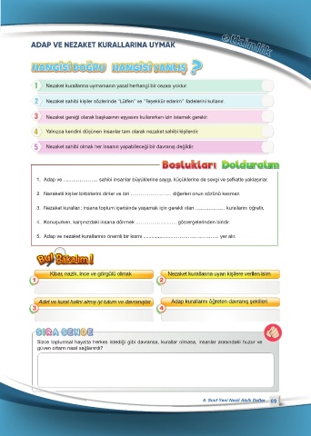 3. Nezaket kuralları; insana toplum içerisinde yaşamak için gerekli olan ……………… kurallarını öğretir.