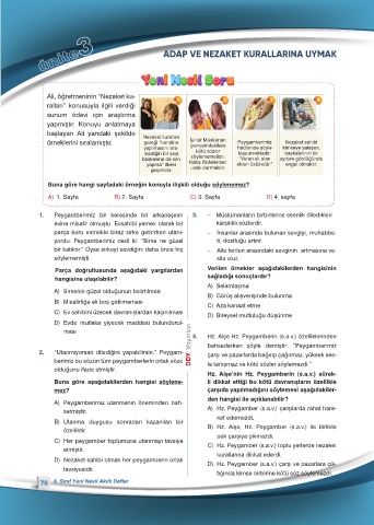 etmiştir. C) Hz. Peygamber (s.a.v.) toplu yerlerde nezaket