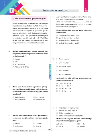 5. Metinde bahsedilen ibadeti yerine getirirken vü- IV. Yanlış davranışlardan uzaklaşmak