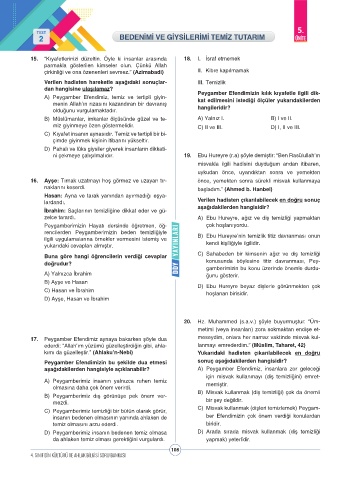 C) Peygamberimiz temizliği bir bütün olarak görür, C) Misvak kullanmak (dişleri temizlemek) Peygam-