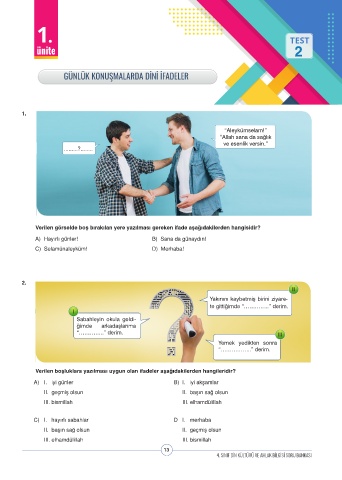4. SINIF DİN KÜLTÜRÜ VE AHLAK BİLGİSİ SORU BANKASI
