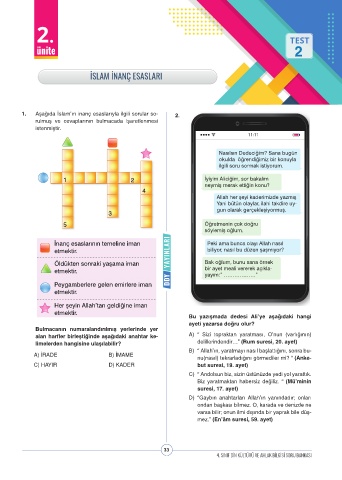 1. Aşağıda İslam’ın inanç esaslarıyla ilgili sorular so- 2.