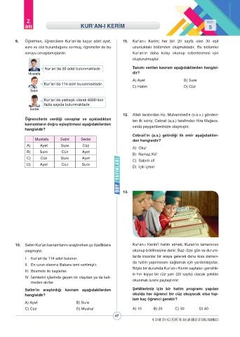 9. Öğretmen, öğrencilere Kur’an’da kaçar adet ayet, 11. Kur’an-ı Kerim; her biri 20 sayfa olan 30 eşit