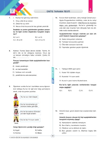 7 ÜNİTE TARAMA TESTİ ÜNİTE